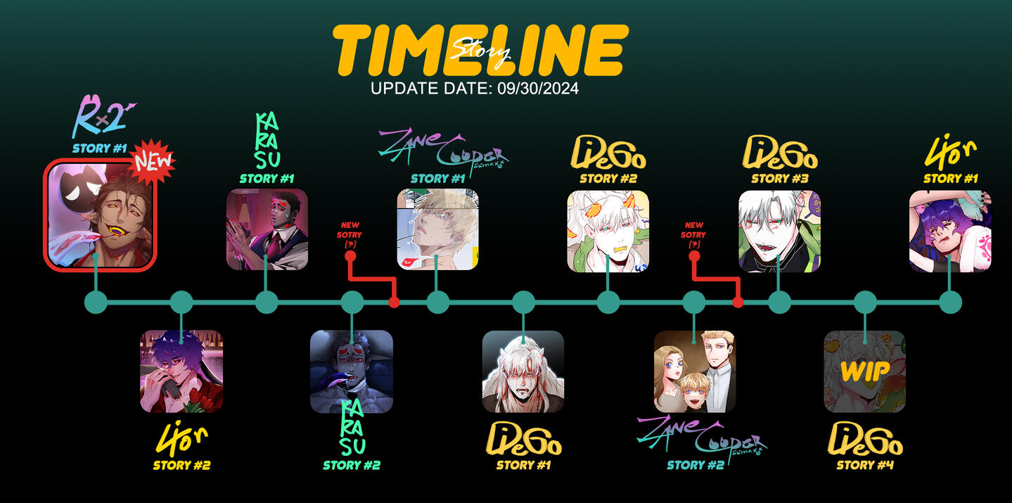 #เรื่องสั้นของเหล่าMonsters จะดำเนินเรื่องราวผ่านมุมมองของแต่ละตัวละคร โดยแบ่งเป็น (ชื่อตัวละคร): Story #(ตามด้วยตัวเลข) เช่น Karasu Story #1 ✦ ในแต่ละ Chapter สตอรี่ของแต่ละตัวละคร จะไม่เรียงทามไลน์ต่อกัน แต่ทุกเรื่องราวของแต่ละคนจะมีช่วงเวลาที่มาบรรจบกันเสมอ